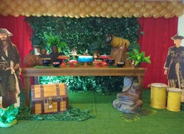Mesa com muro ingles e iluminação cênica colorida (opcionais)
